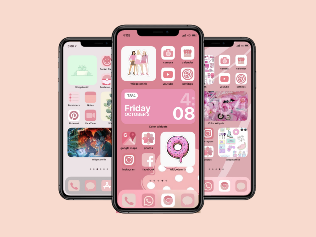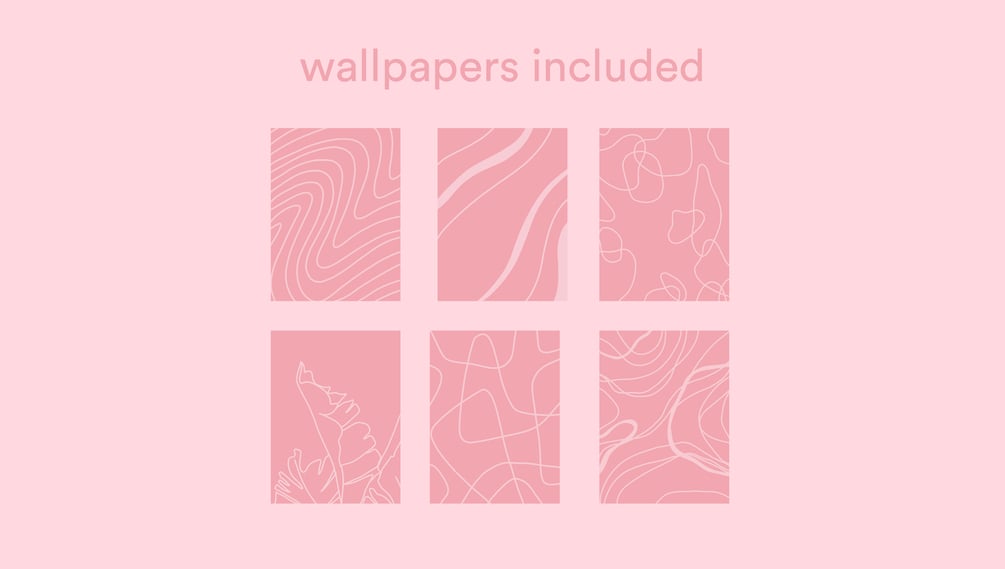 This bundle of 70 Pink iOS 14 custom app icons includes a pack of 6 hand-drawn wallpapers for your iPhone and iPad.